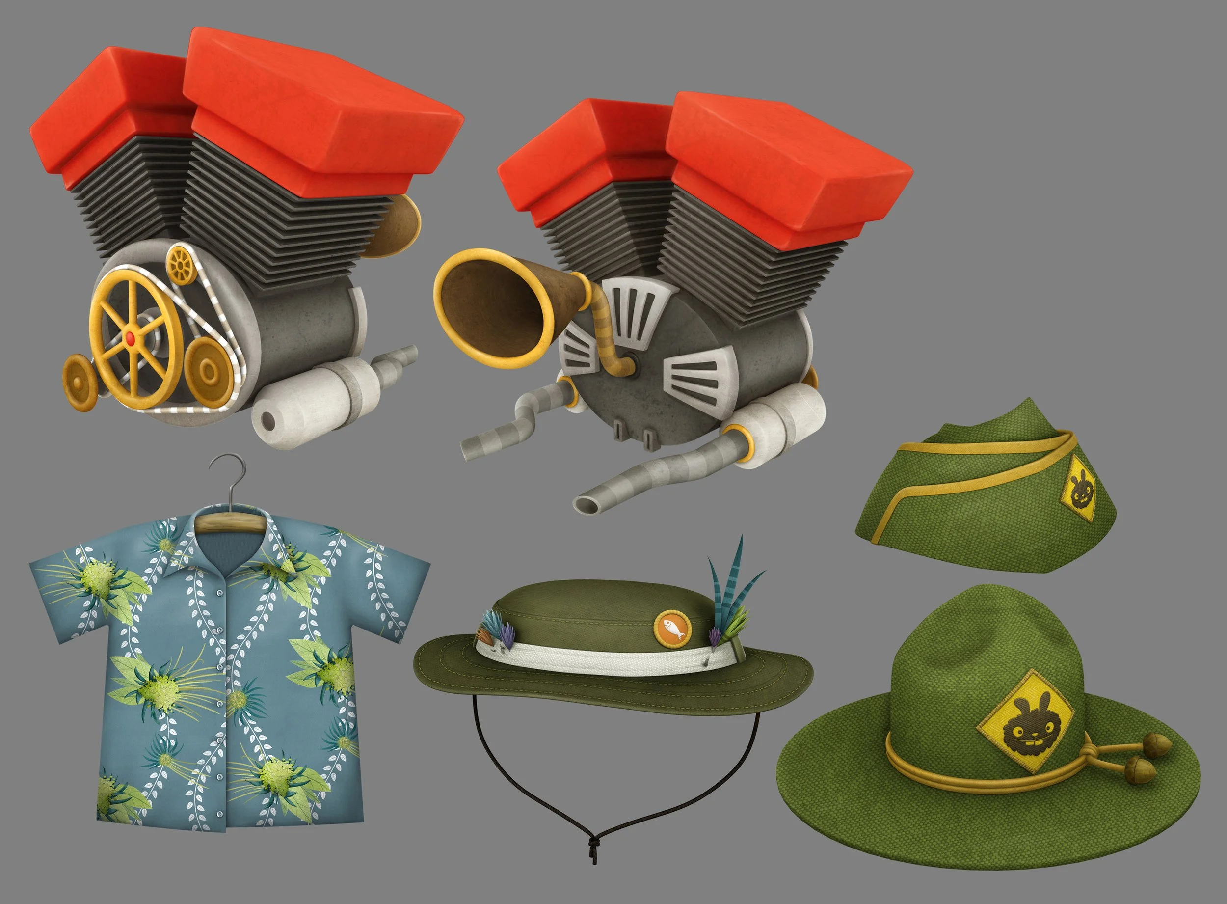 Prop Design and Paint, Wallykazam! (Hats and engine CG models by Isaac Gelman)